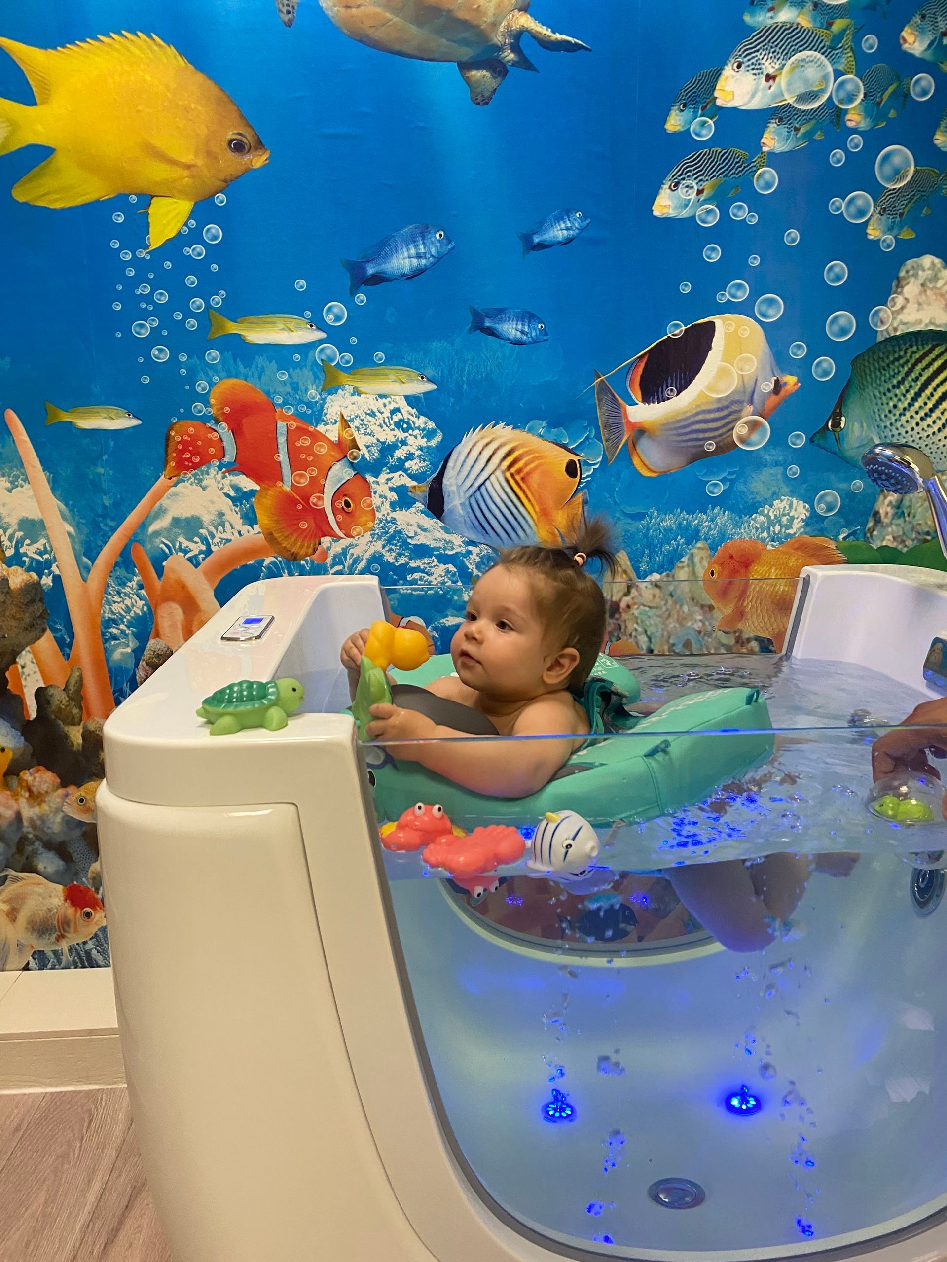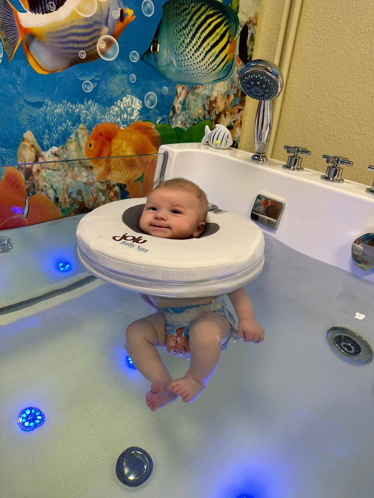 Ein fröhliches Baby im Baby Spa! 🌈💦